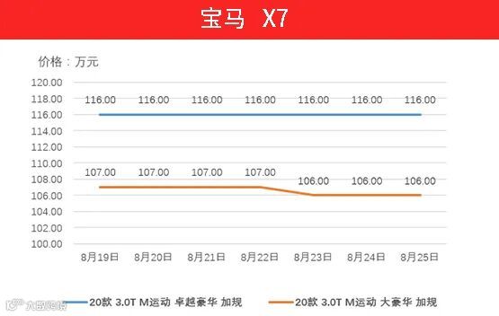 宝马X5的表现一向是中规中距,上周宝马X5三款车型均未出现太大的波动。