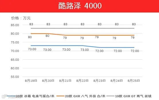 酷路泽4000上周丐版车型与GXR八气 外挂车型均下降10000元,而GXR GT车型保持不变,属于正常价格波动。
