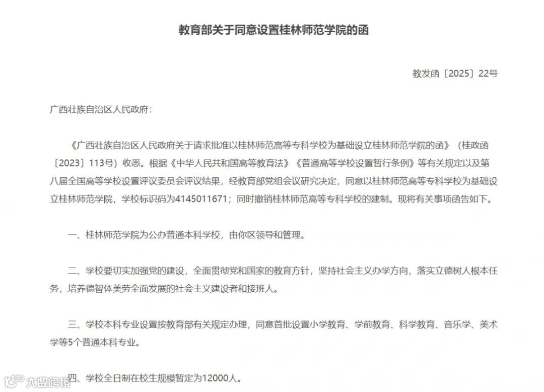 同意设置桂林师范学院的函。图源中华人民共和国教育部