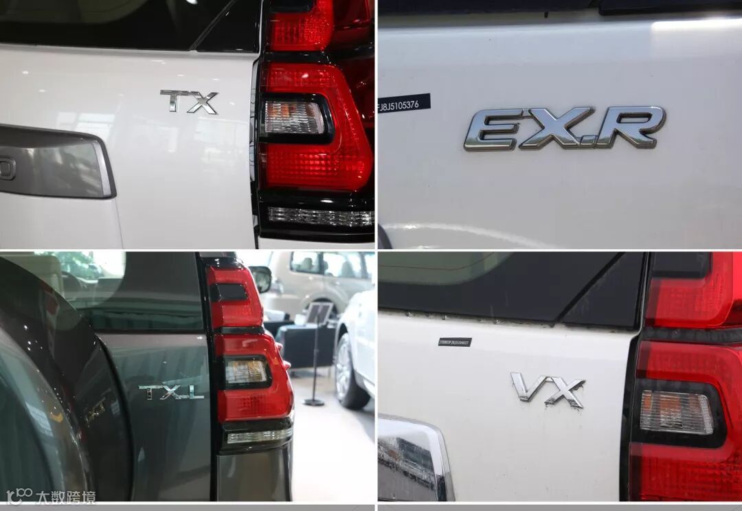 其次,看尾标型号。目前霸道2700分为,TX,TX-L,VX,EX-R,GX-R,VX-R。前面三个为霸道常见的尾标,而后面三个型号特指迪拜版。在这里从尾标中,我们也能看出此款车型的配置高低,TX为丐版,TX-L为中配(其中分有两气囊与九气囊),VX一般指是高配。同理,EX-R迪拜版为低配,GX-R为迪拜版中配,VX-R迪拜版为高配。