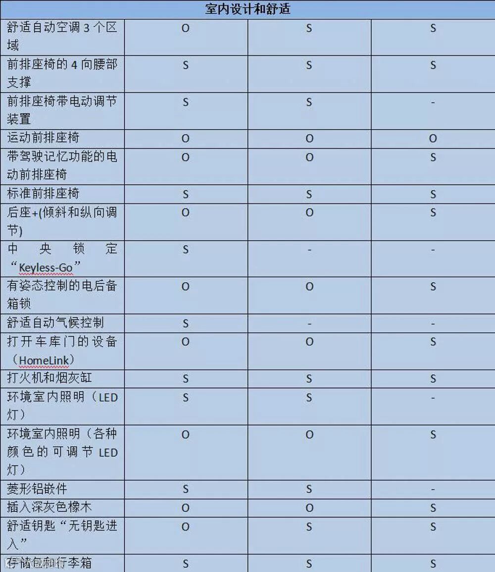 内部配置上Dynamic就和后面俩配置有差距了,国人比较喜欢的三区空调和无钥匙进入这些配置都没有。