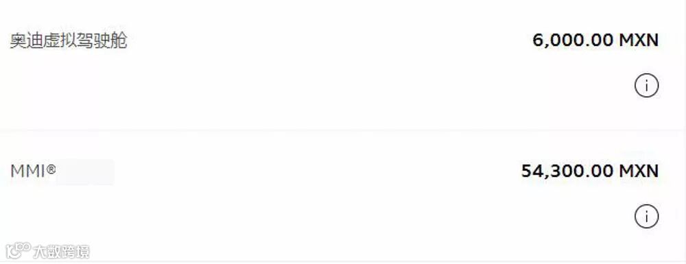 两个选装的价格分别为28750墨西哥元和45850墨西哥元。
