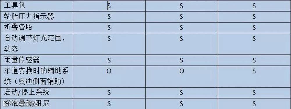 一、操控(注:s为标配 o为选配 -为无)