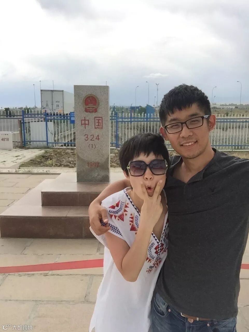 △ 两人在324界碑的留影,是中国和哈萨克斯坦的界碑。