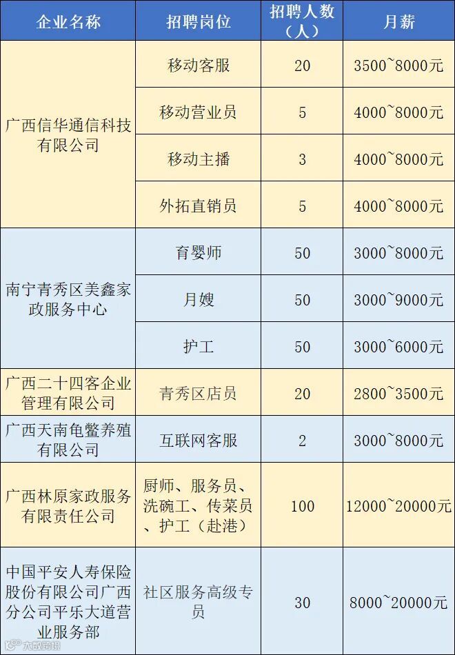 2月27日—3月1日,南宁市家门口就业服务站将在江南区、良庆区、青秀区分别举办3场招聘会,多家企业现场招聘,提供上百个工作岗位。招聘会现场还设置就业政策咨询、人才简历诊断专区,为求职者带来不一样的求职体验!