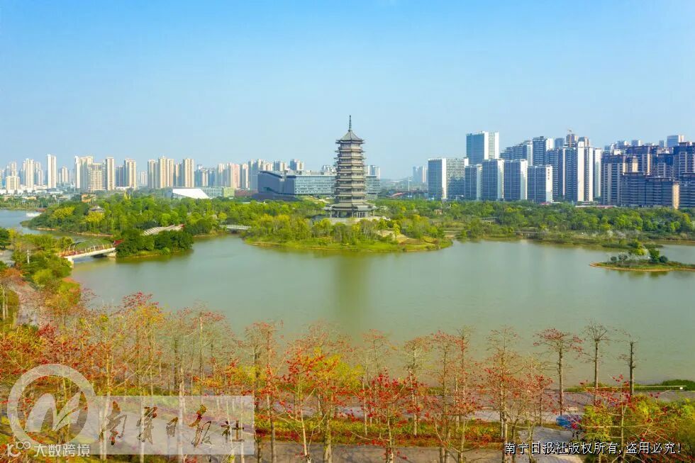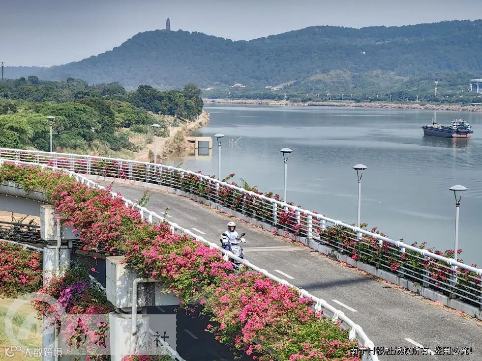 开在立交桥上的三角梅适合使用航拍设备拍摄大景风光美图,若想拍一些文艺、人像照片,可到良庆大桥附近寻找角度。