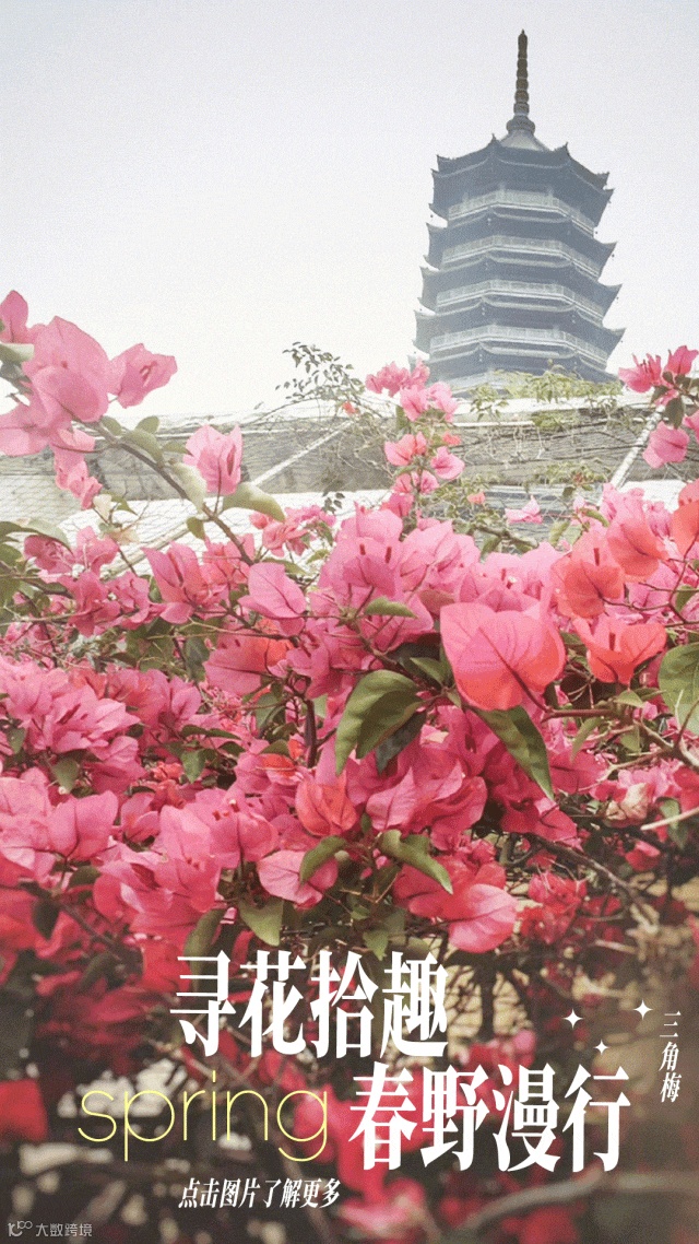 选一个好天气,拍摄时间选在下午四五点,阳光更柔和。三角梅花朵多,颜色艳,穿着淡色的衣服更搭~准备好帽子、透明雨伞等道具,氛围感更足!