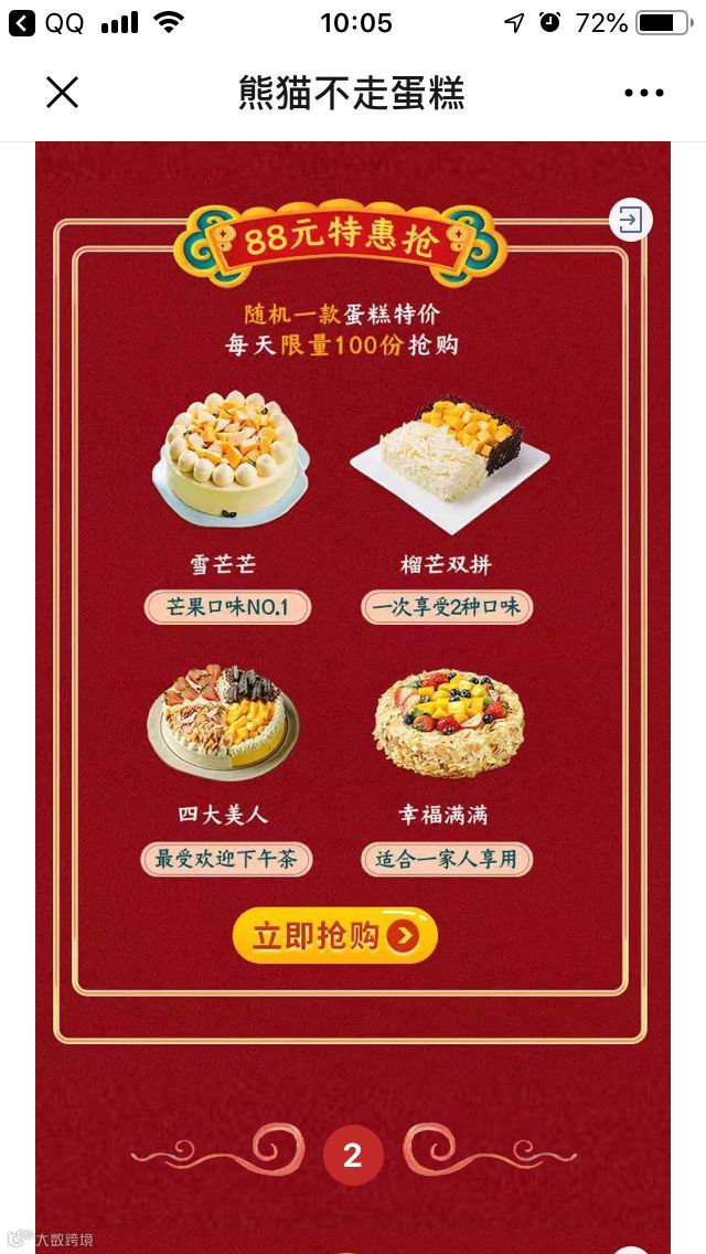 ① 88 元抢购 258 元爆款蛋糕等商品,每天只卖 100 份,以稀缺性引发客户疯抢;