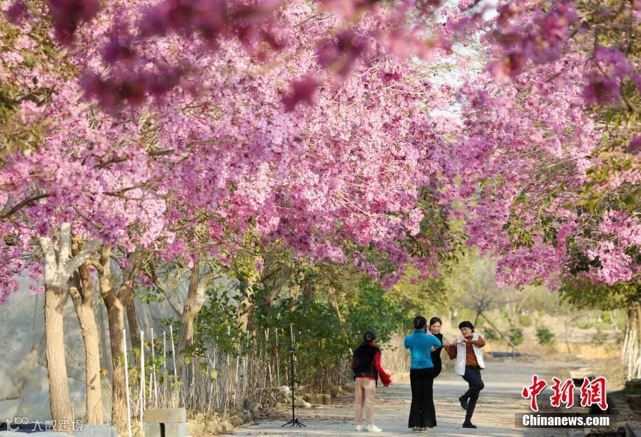 花界“顶流”:黄花风铃木、洋紫荆、桃花等竞相绽放。