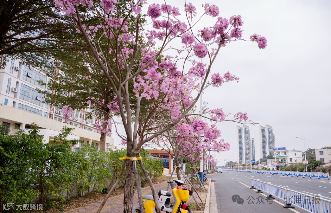 北海市区杭州路两旁的紫花风铃木迎来盛花期花期(11月延续至次年3月),满树繁花,如云如霞,吸引了不少市民和游客前来赏花拍照,记录下这春日里的浪漫。