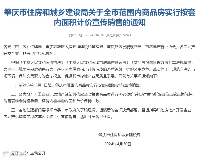 此前,广东省肇庆市率先发布商品房实行按套内面积计价的通知。当时,此事引发了热烈讨论,取消公摊会不会导致房价上涨等话题,登上了热搜榜。