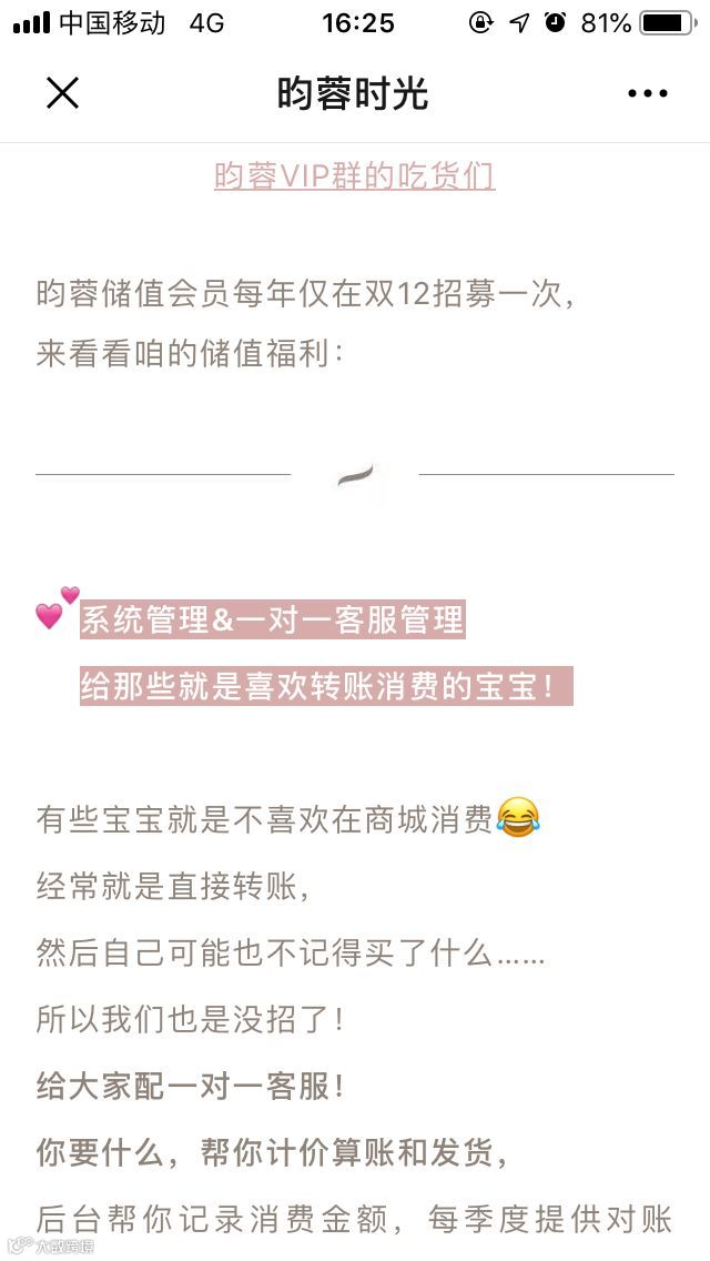 另外,「昀蓉时光」在去年底筹建了线下门店,然后将店铺版本切换为有赞零售,打通线上线下会员体系,并组织线下充值活动,引导用户关注线上,对品牌形成整体认知。
