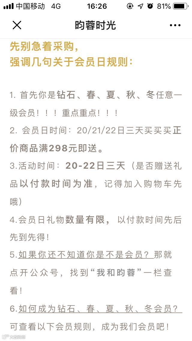 「昀蓉时光」举办大促时,设置不需要复杂计算的优惠方式,以充分的让利安排各个阶段的活动: