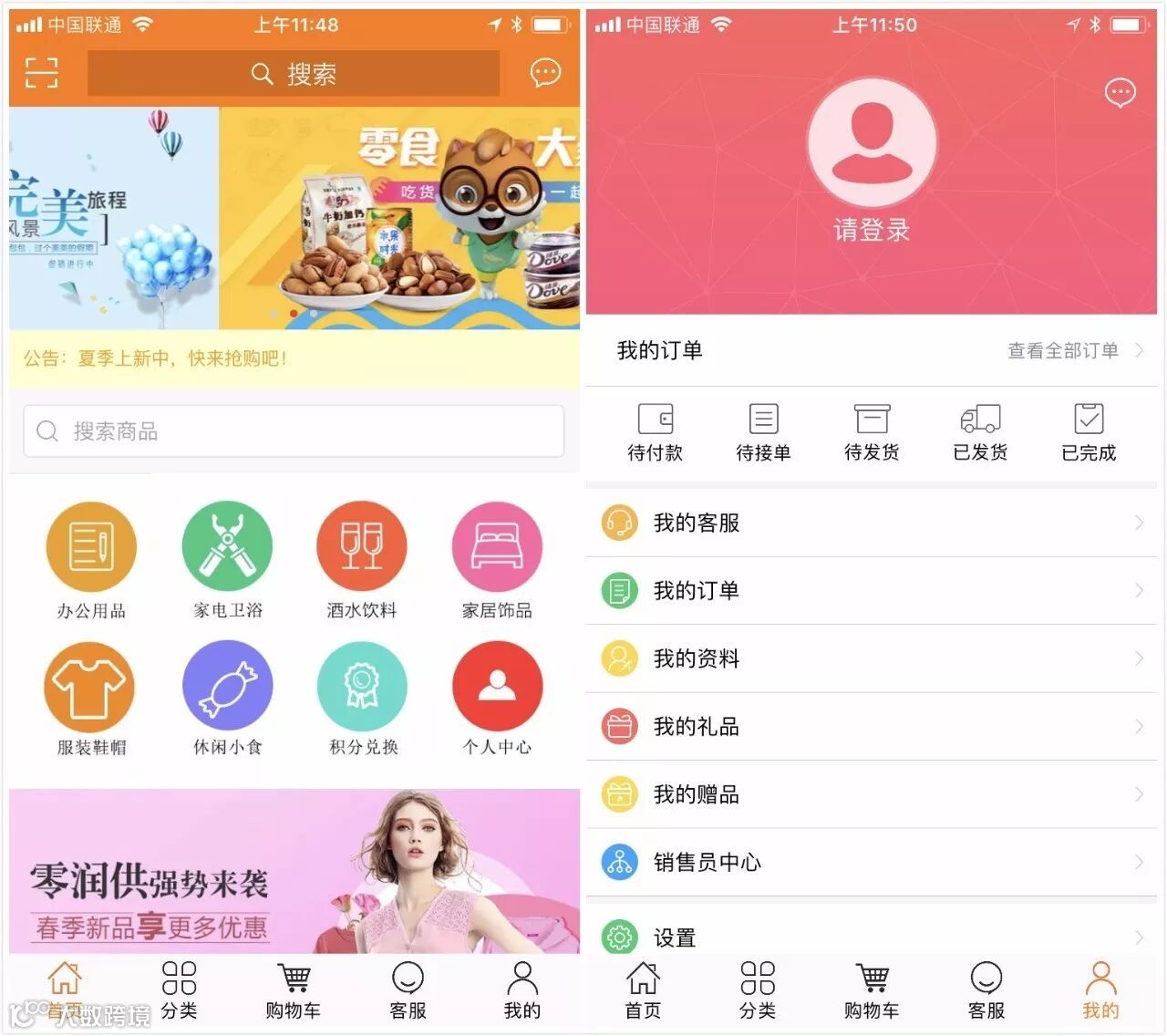 主要批发建材、预包装食品兼散装食品、服装鞋帽、日用百货、家用电器等,选择App大师,与原有商城打通,提高了消费者回购率。