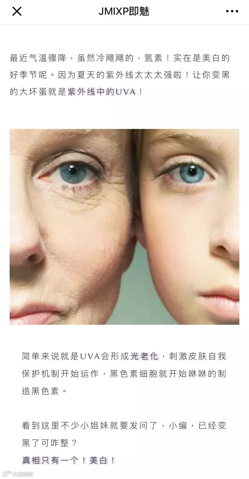 第一步:对比图直击用户痛点。首先,开篇要针对用户的某一个痛点,进行横向对比。比如一款抗老去皱产品的文案,首先要会放出两张对比图:皱纹多和皱纹少的两张脸,直戳用户对于长皱纹的焦虑,吸引他继续读下去。