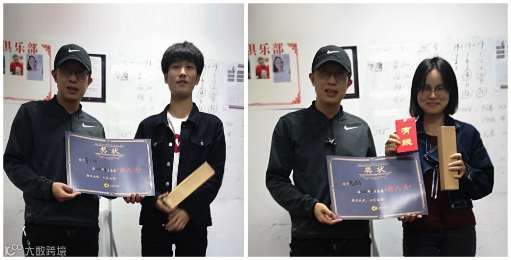 恭喜可乐、东东,在新人中脱颖而出!获得奖金、奖状和奖品!