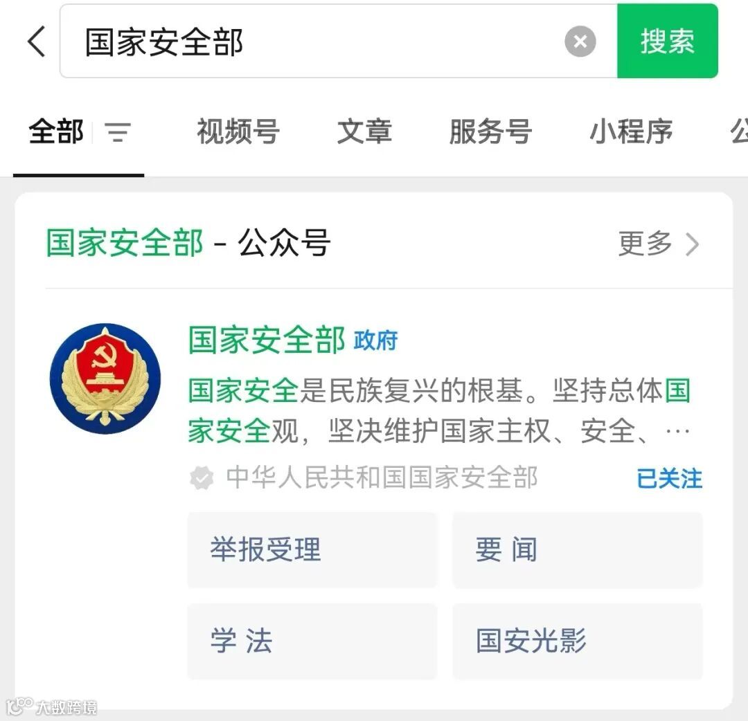 关注“国家安全部”公众号