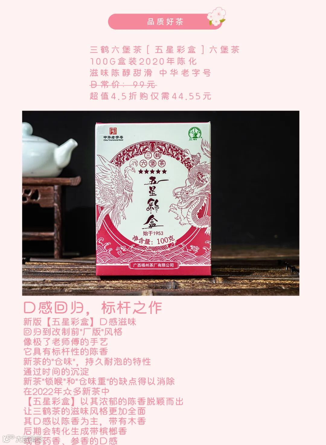 三鹤六堡茶五星彩盒低至44.55、五折购段泥刻绘紫砂杯到手仅需54.5......快淘爆款热门茶物