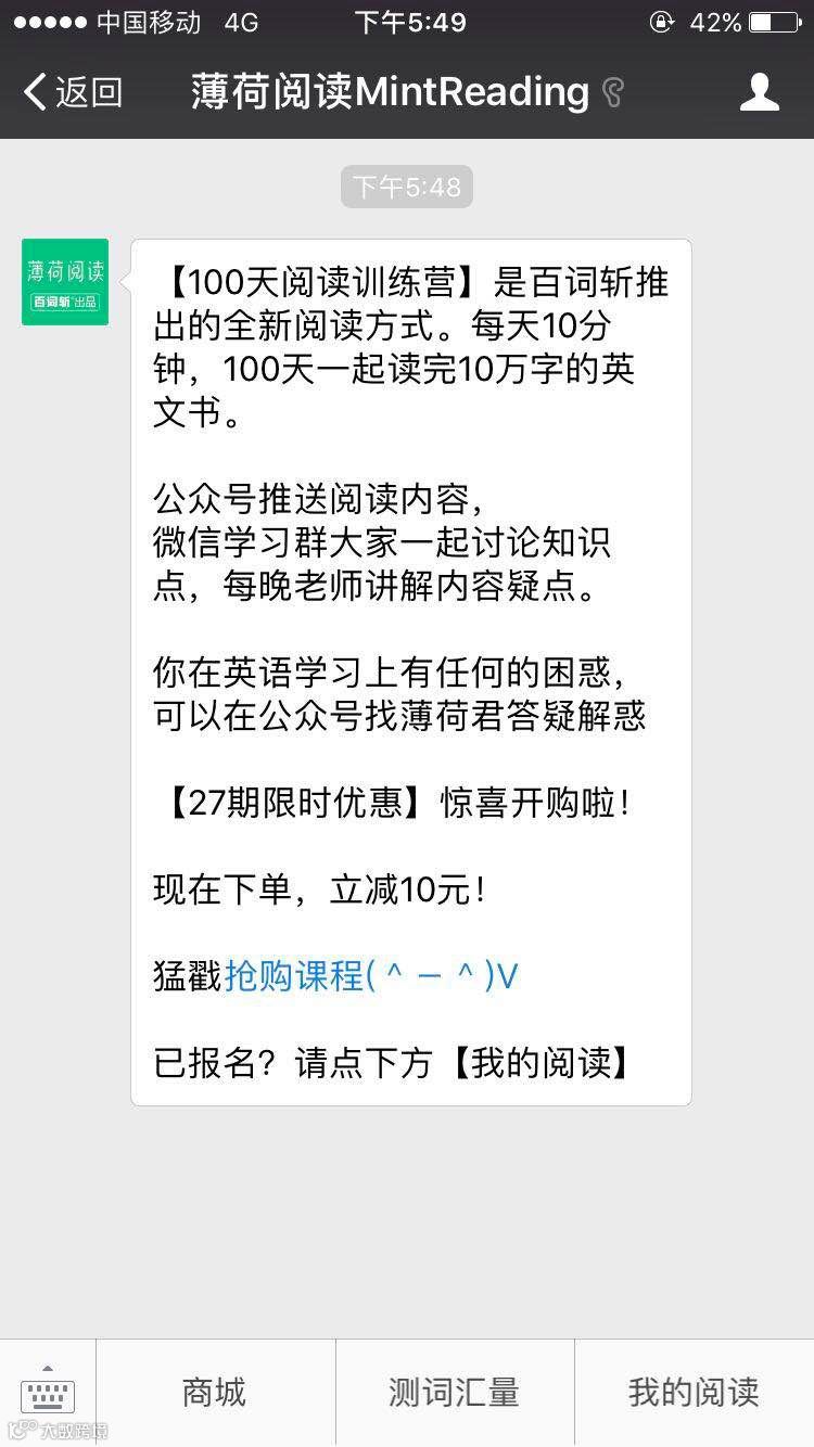 如下图所示:自动关注回复,首先引导粉丝报名课程,如已报名,引导其点击下方菜单【我的阅读】。对报名和未报名粉丝进行分层引导,加强与公众号互动。