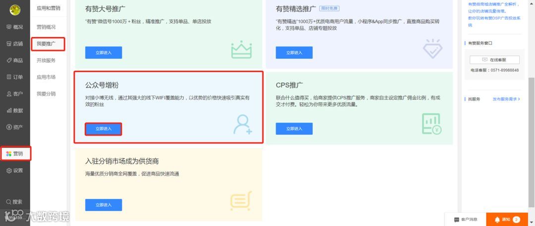 WiFi涨粉投放入口:有赞微商城后台 - 营销 - 我要推广 - 公众号增粉