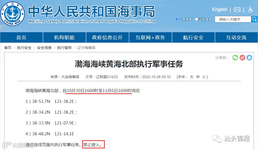 近期,多海域因军事任务等持续禁航,请及时了解相关信息。