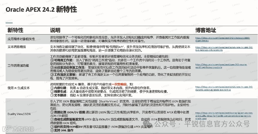 王方钢介绍APEX近5年的频繁迭代版本,被Oracle重视程度日益见长,并重点介绍了APEX24.2最新版本的相关特点。