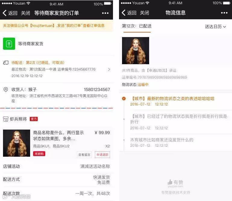 ● 支持分期查看物流信息、送达日历、顺延配送、取消顺延等;