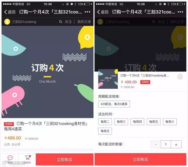 当年下厨房用一句“唯爱与美食不可辜负”掳获了无数吃货的心,这次又换了种方式勾搭你的味蕾。“三刻321cooking”是下厨房推出的食材周期送服务公众号。每周配送4道精选菜肴,所有推荐食材按周订购,全程冷链,部分菜肴已进行初步加工,为你解决做饭中最麻烦的部分。