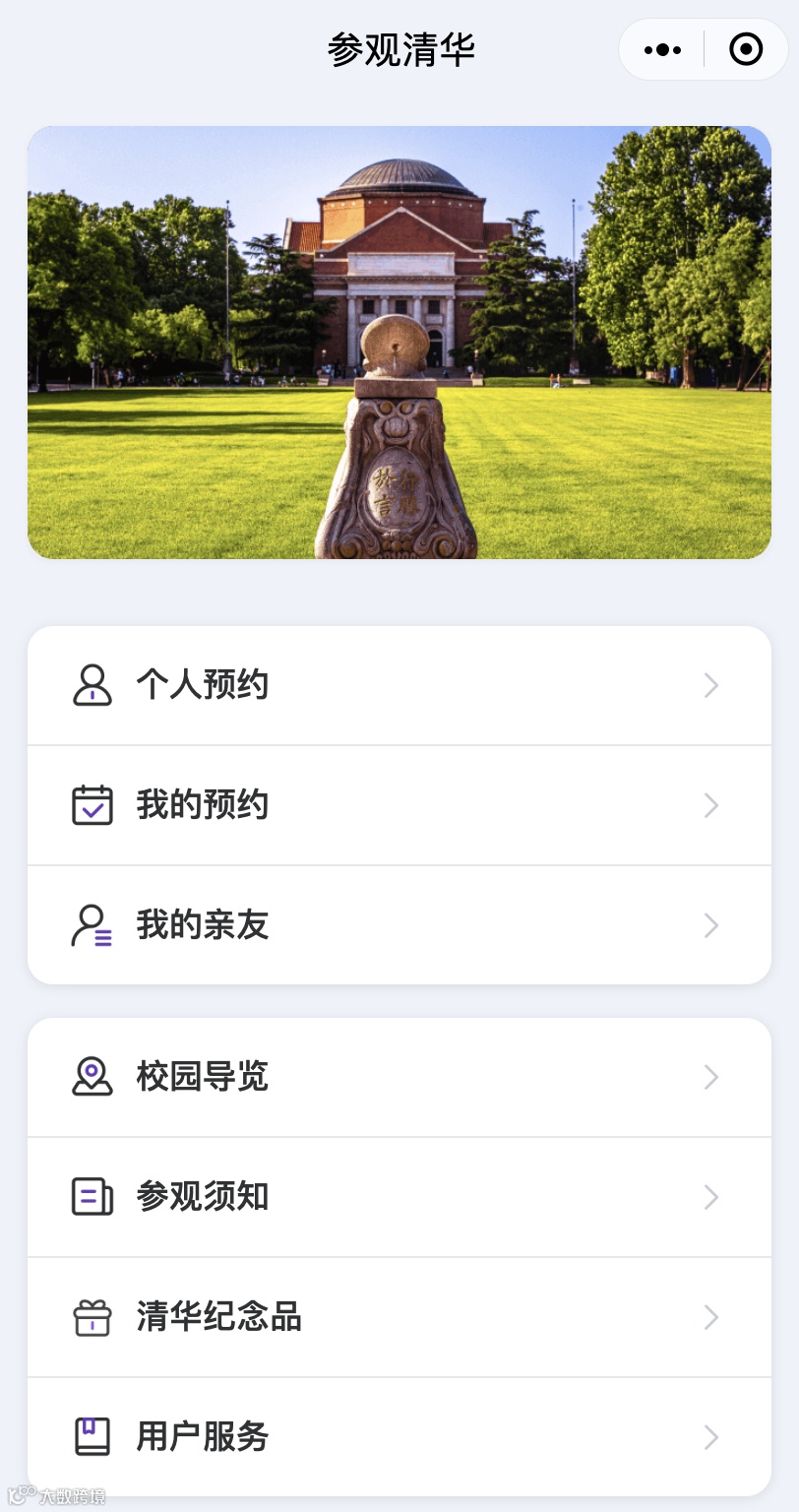 清华明确,校园参观实行网上实名预约,参观人员从指定校门出入。个人参观通过“清华大学”公众号——“参观清华”菜单进行实名预约。团队参观通过“清华大学”官方网站——常用链接——“校园参观”栏目进行预约。团队参观面向中小学生群体开放,预约主体为中小学或教育主管部门。