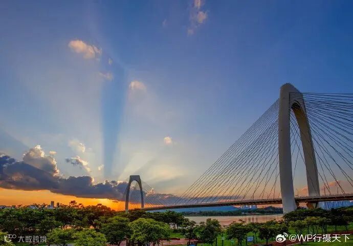 五象新区滨江公园,美丽异木棉树粉嫩的花朵如同云霞一般,与蓝天白云相映成趣,随手一拍就是一张美丽的风景画。