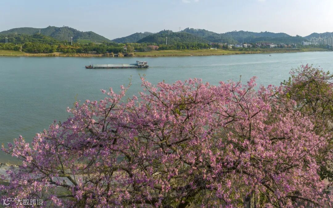 城市道路上,三角梅、美丽异木棉等花卉绽放,与绿色的灌木相映衬,为忙碌的都市生活增添了诗情画意。