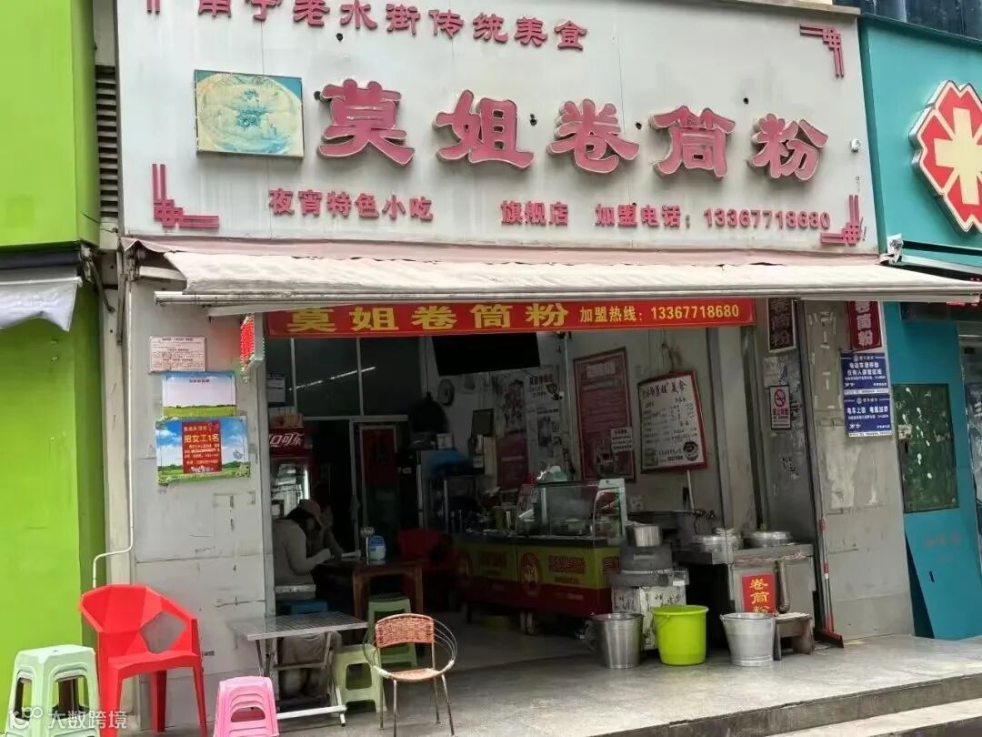 走进水街美食城,第一站便是各具特色的粉类食品。一家老字号老友粉,门面不大,却干净整洁。老板手法娴熟地煮粉,酸辣的口感,丰富的配料新鲜切粉与秘制酱料的碰撞形成了独具南宁风味的老友粉,一碗下肚,暖身更暖心。