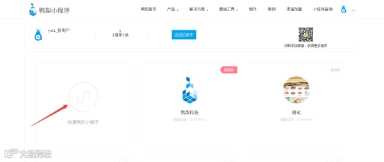 登录之后,点击创建新的小程序,选择适合的模板,开始创建的小程序是基础版,试用期为7天。