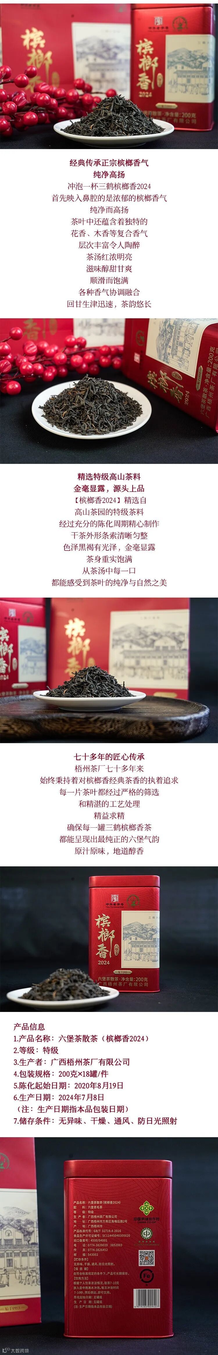 三鹤六堡茶槟榔香2024