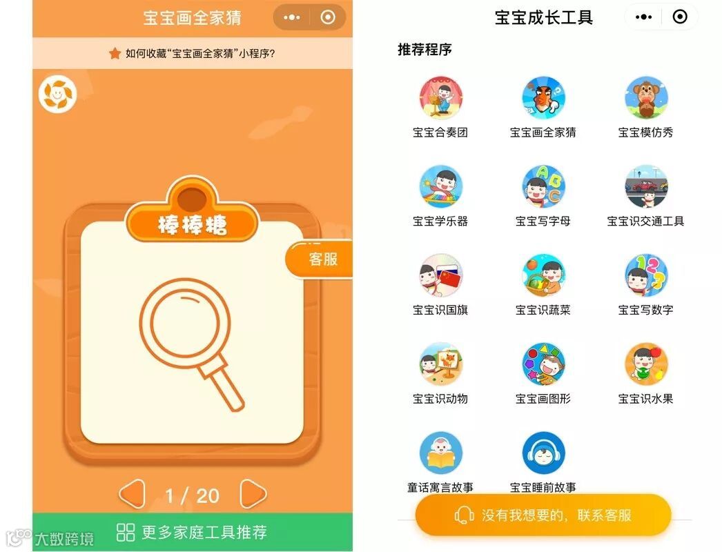 学龄儿童识别能力的培养需要家长的耐心教导,这款小程序可以说集成了几十本识别能力书籍,好玩又好学。同系列有非常多不同类型的玩法,喜欢的宝爸宝妈可以搜罗一下。