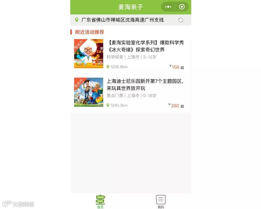 麦淘亲子旗下小程序,登陆自动推荐附近活动,目前只收录了上海市的活动,相对来说功能单一。