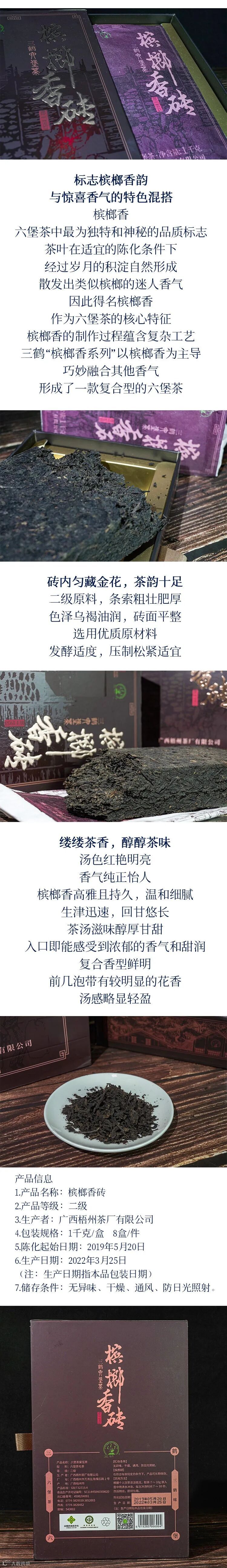 三鹤六堡茶槟榔香砖二级黑茶