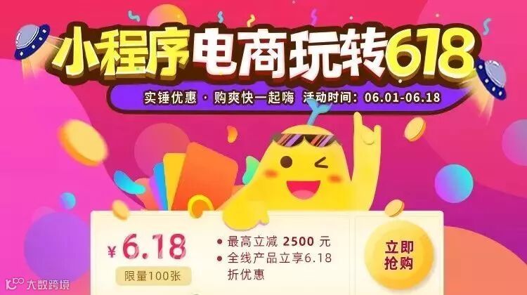 为了迎接这场电商狂欢盛宴,鸭梨小程序针对电商品牌618营销需求,以高性价比的促销力度,隆重推出“小程序电商·玩转618”的主题活动。