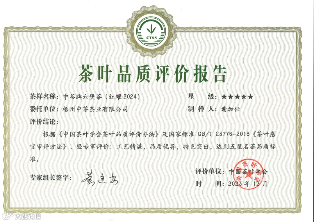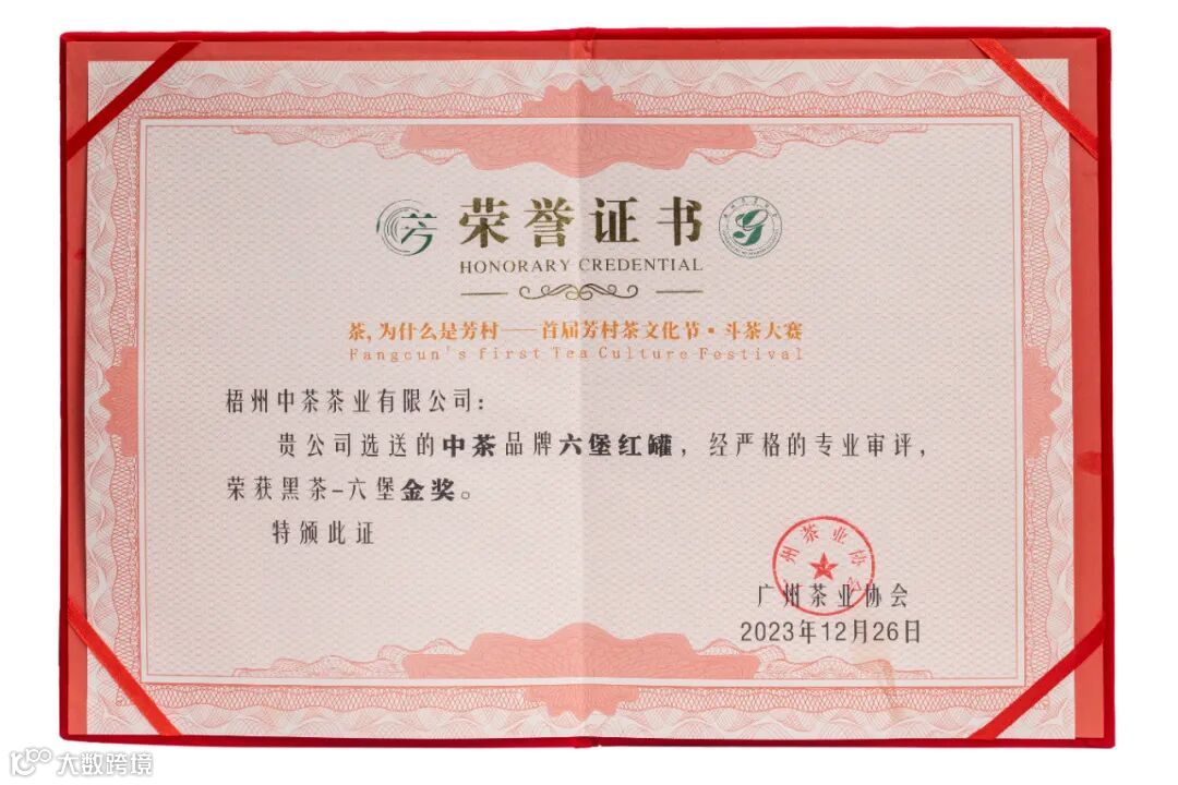 2023年12月,还没上市的【红罐2024】,已经在中国茶叶学会2023茶叶品质评价(第二阶段)茶叶评比活动中荣获5星级评价,并在2023首届芳村茶文化节茶业评比中荣获黑茶-六堡金奖,两项殊荣体现了市场对于产品实力的高度肯定,也让其备受期待。