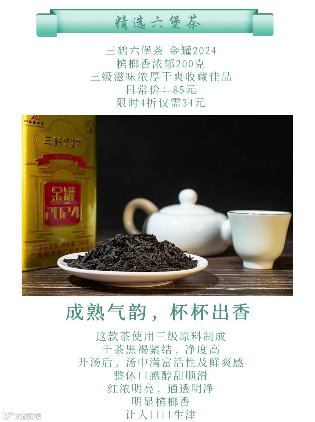 三鹤六堡茶·好韵!一特级好茶,陈香甜香花蜜香