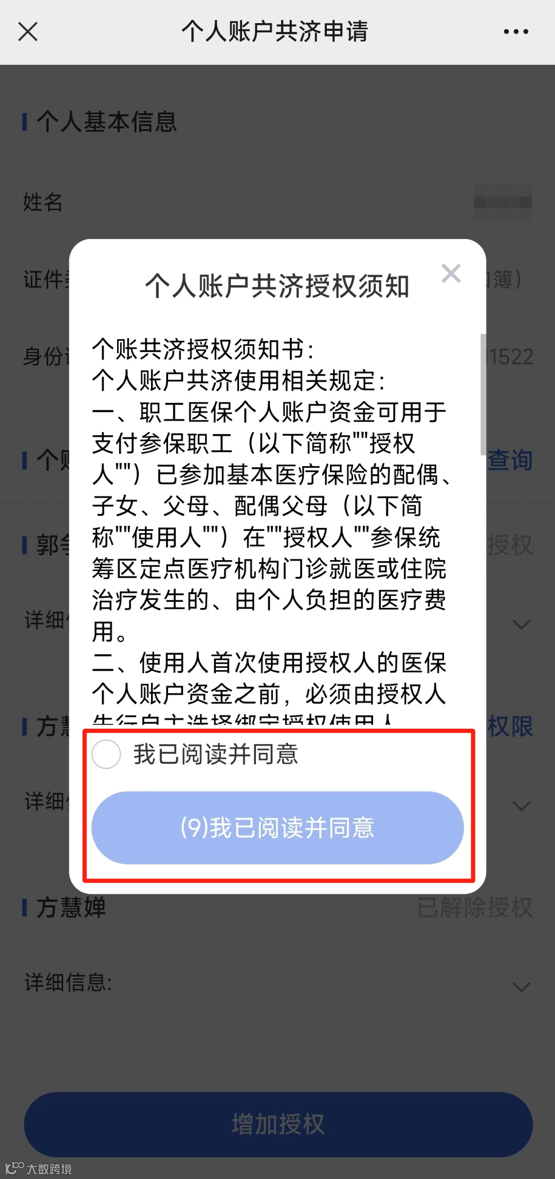 ③按照流程填写信息,在选择支付方式时,勾选【个账支付】,即可开通医保个账支付。