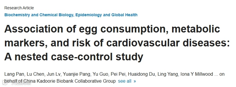 [1]Pan L, Chen L, Lv J, et al. Association of egg consumption, metabolic markers, and risk of cardiovascular diseases:A nested case-control study. Elife. 2022;11:e72909.