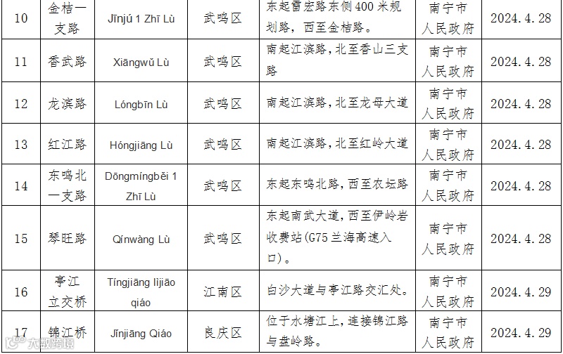 南宁公布17个新地名!应塔街、亭江立交桥……