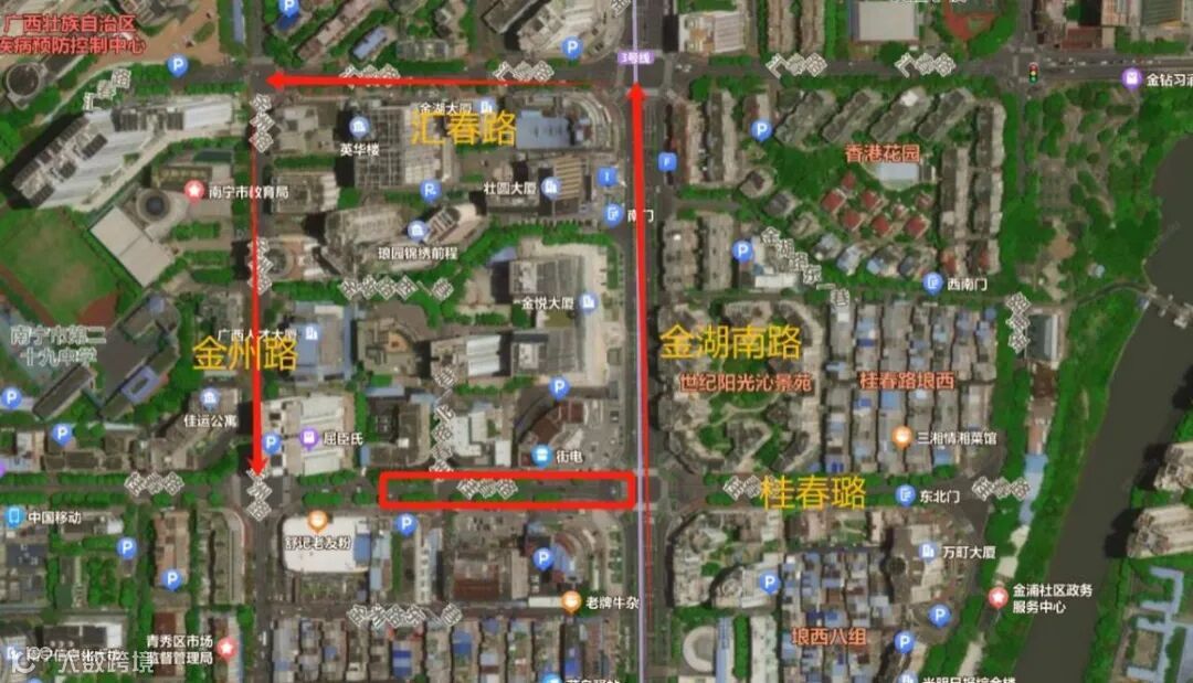 一、从2024年2月6日0时起,预计至2027年6月31日24时止,在轨道交通6号线埌西站施工期间对桂春路(就业中心西门至金湖南路交叉口段)进行道路全封闭施工,禁止所有车辆通行。全封闭施工路段不含桂春金湖南路路口。封闭施工期间,需途经该路段的机动车及非机动车,可通过金洲路、汇春路、锦春路、金湖南路绕行。绕行线路如下: