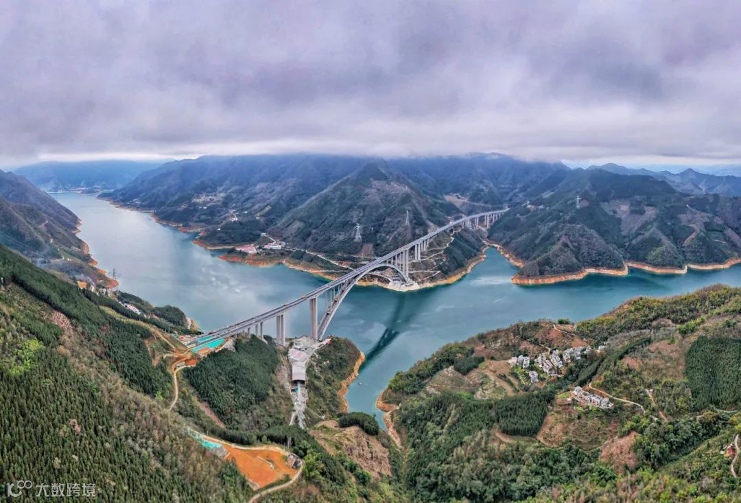 天峨龙滩特大桥由广西交通投资集团投资建设,是拱桥技术发展的前沿工程。项目是南丹至天峨下老高速公路(简称南天高速)的控制性工程,位于广西河池市天峨县龙滩大坝上游6公里处,横跨红水河,全长2488.55米,主桥为计算跨径600米的上承式劲性骨架混凝土拱桥,双向四车道,设计行车速度100公里/小时,2020年12月大桥主体工程全面开工建设。