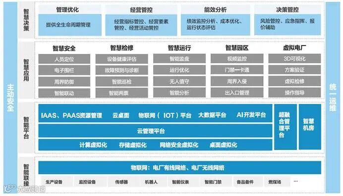 智能联接:通过物联网技术将电厂的生产设备、监控设备、传感器、巡检机器人、智能仪表、智能门禁、备品备件等连接成一个智能网络,实现电厂的人、设备、系统等广泛智能联接。
