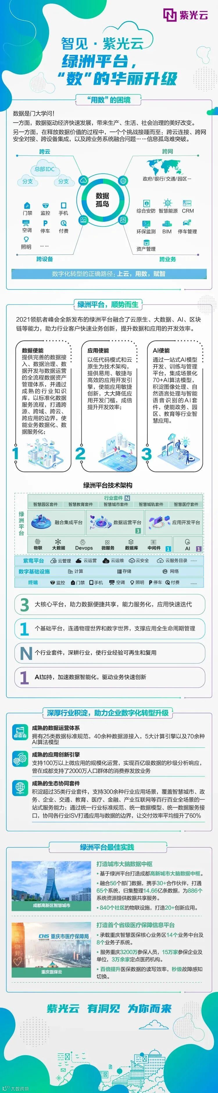 紫光股份旗下新华三集团推出绿洲平台3.0。全新一代绿洲平台实现内核进阶,以五大技术能力升级、五大行业方案沉淀、六类服务能力保障,三位一体构筑更领先的用数底座、更落地的用数方案、更全面的用数服务,助力百行百业“用数”、“赋智”,全速推进业务创新和数字化变革。