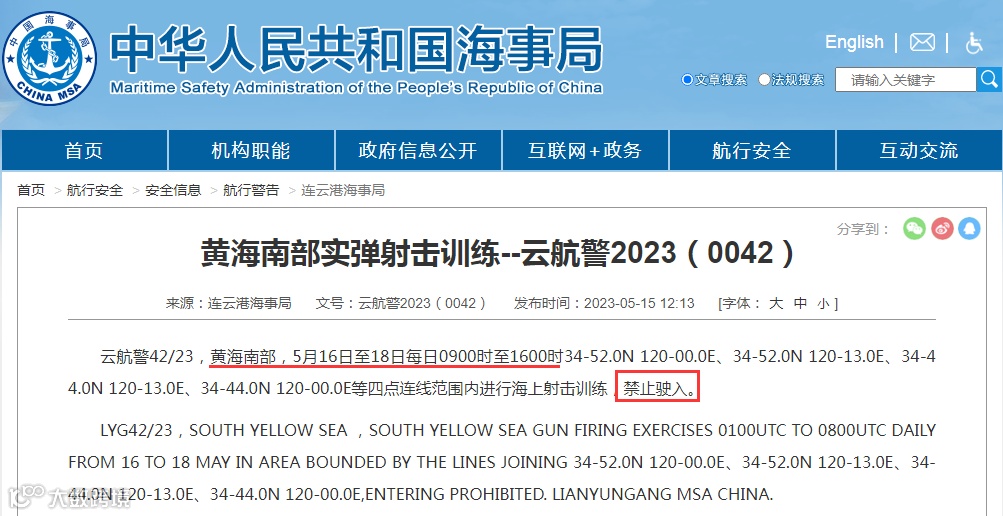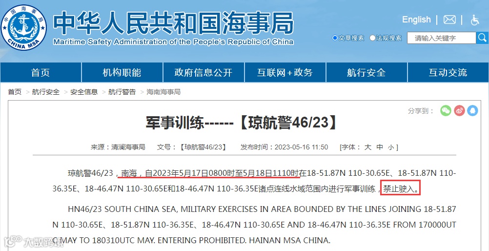 近期,多海域因军事任务等实施禁航,请及时了解相关信息。