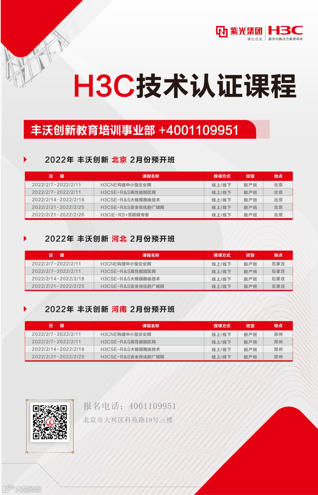 H3C技术认证(2月份 预开班课程表)