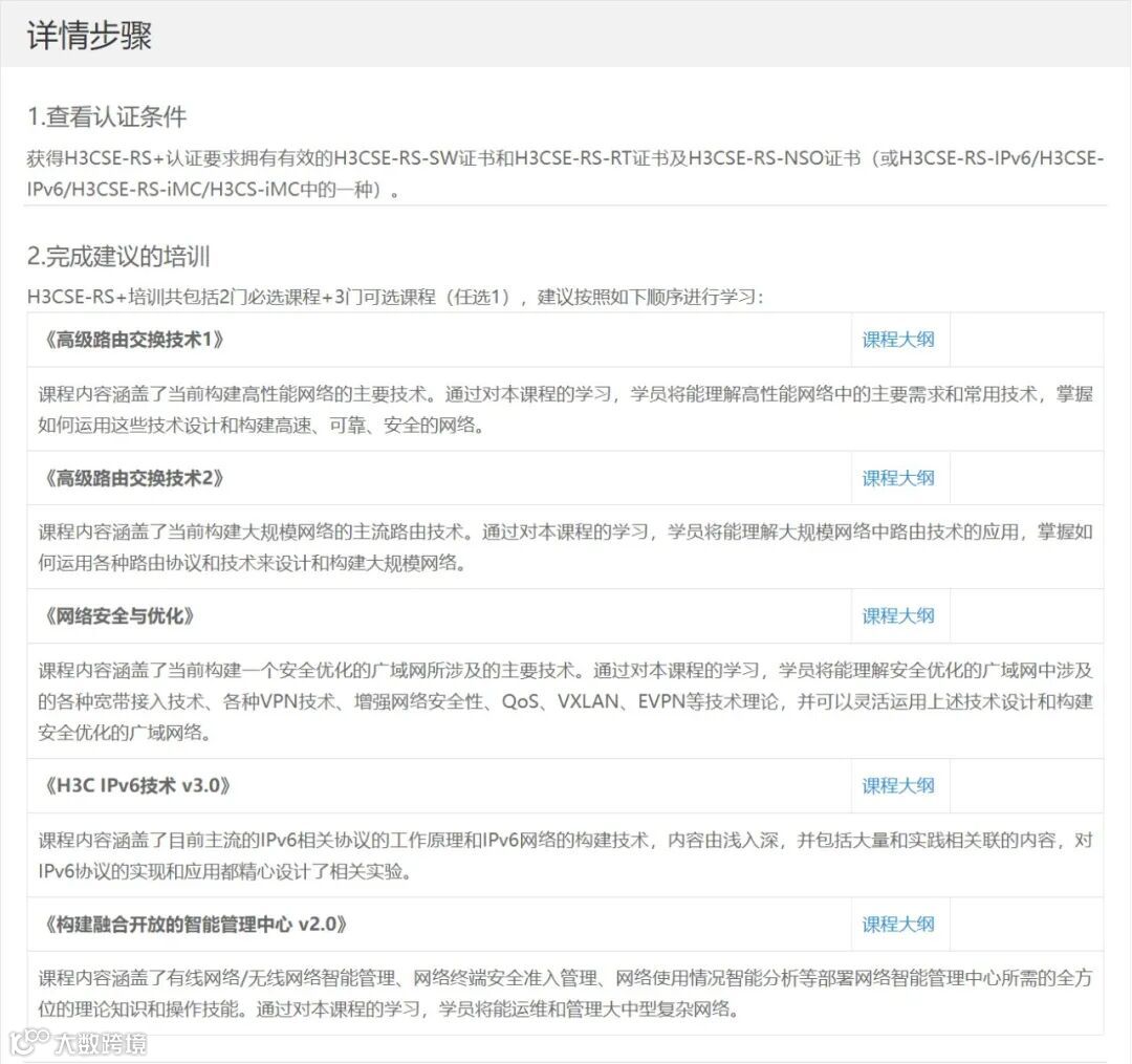 H3CSE-RS+(H3C Certified Senior Engineer for Routing & Switching Plus,H3C认证路由交换网络高级工程师)证书可以证明其持有者掌握了包括路由、交换、组播、VPN、QoS、基本安全特性、VXLAN、EVPN等部署路由交换网络所需的全方位的理论知识和操作技能,可以胜任大中型复杂网络的建设和管理工作。